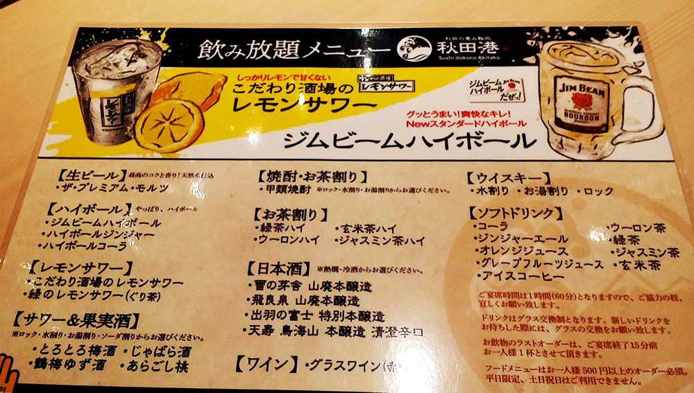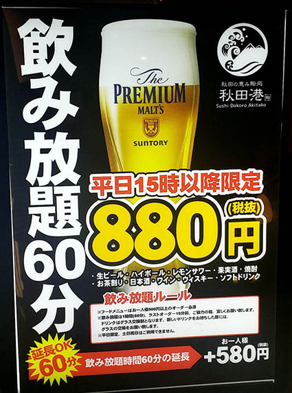 明るい時間から寿司屋でリーズナブルに飲み放題が楽しめますよ♪