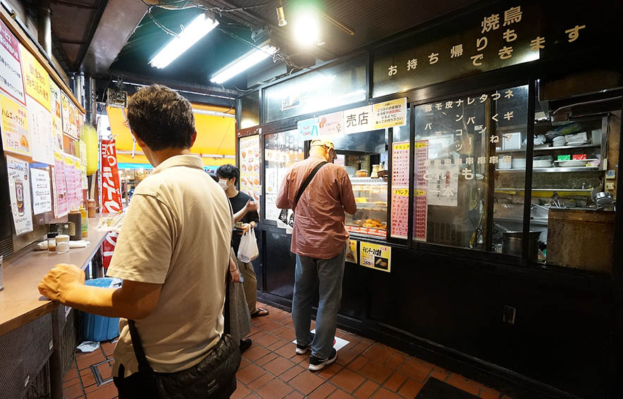 サクッと飲みがしたい方は店頭で揚げものや焼き鳥を購入して、店頭と店内へ続く通路の立飲み用カウンターへ。
