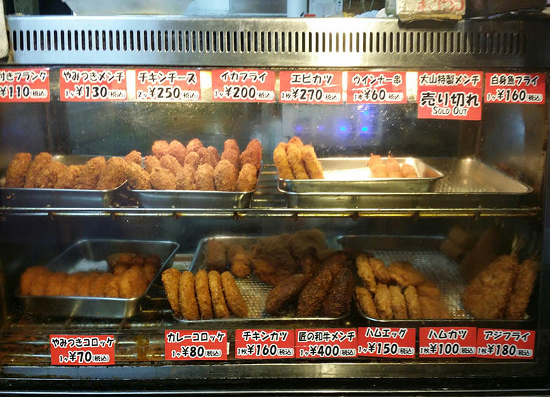 ハムカツやイカフライ、アジフライなど色々ありますが、オススメはやみつきメンチ130円&やみつきコロッケ70円!