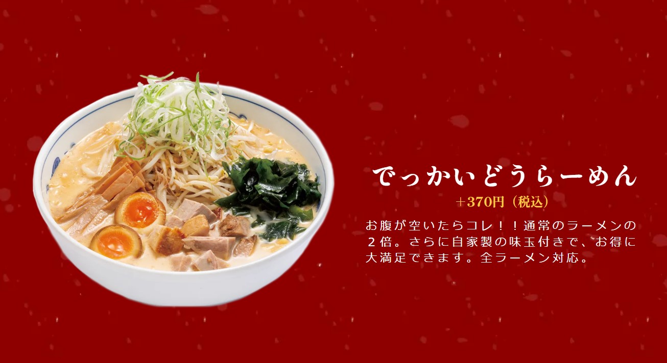 それと通常ラーメンの2倍量、でっかいどうらーめん+370円(税込)!